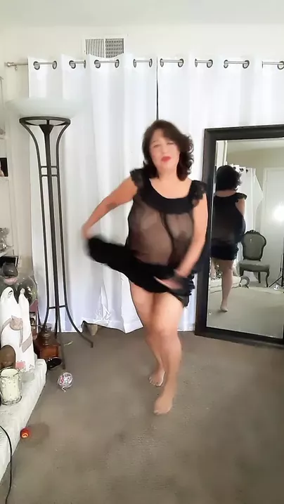 Dancing nude in transparent nightgown. Feel happy with me!